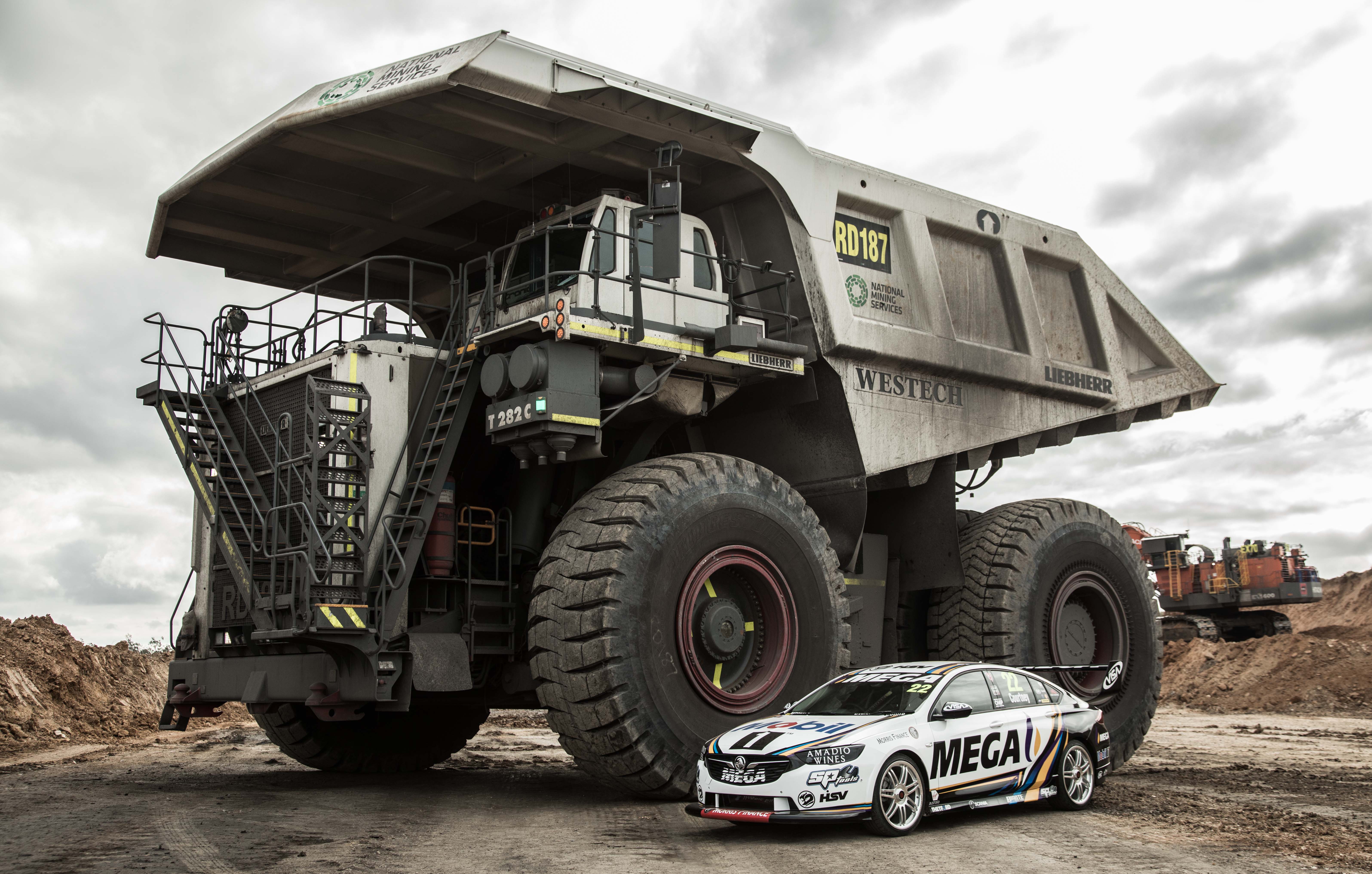 They asked us to film a race between a Mobil 1 supercar and one of National’s Caterpillar Dump Trucks. Not only that, the vehicles would be driven by Mobil 1 professional race car drivers James Courtney and Scott Pye!