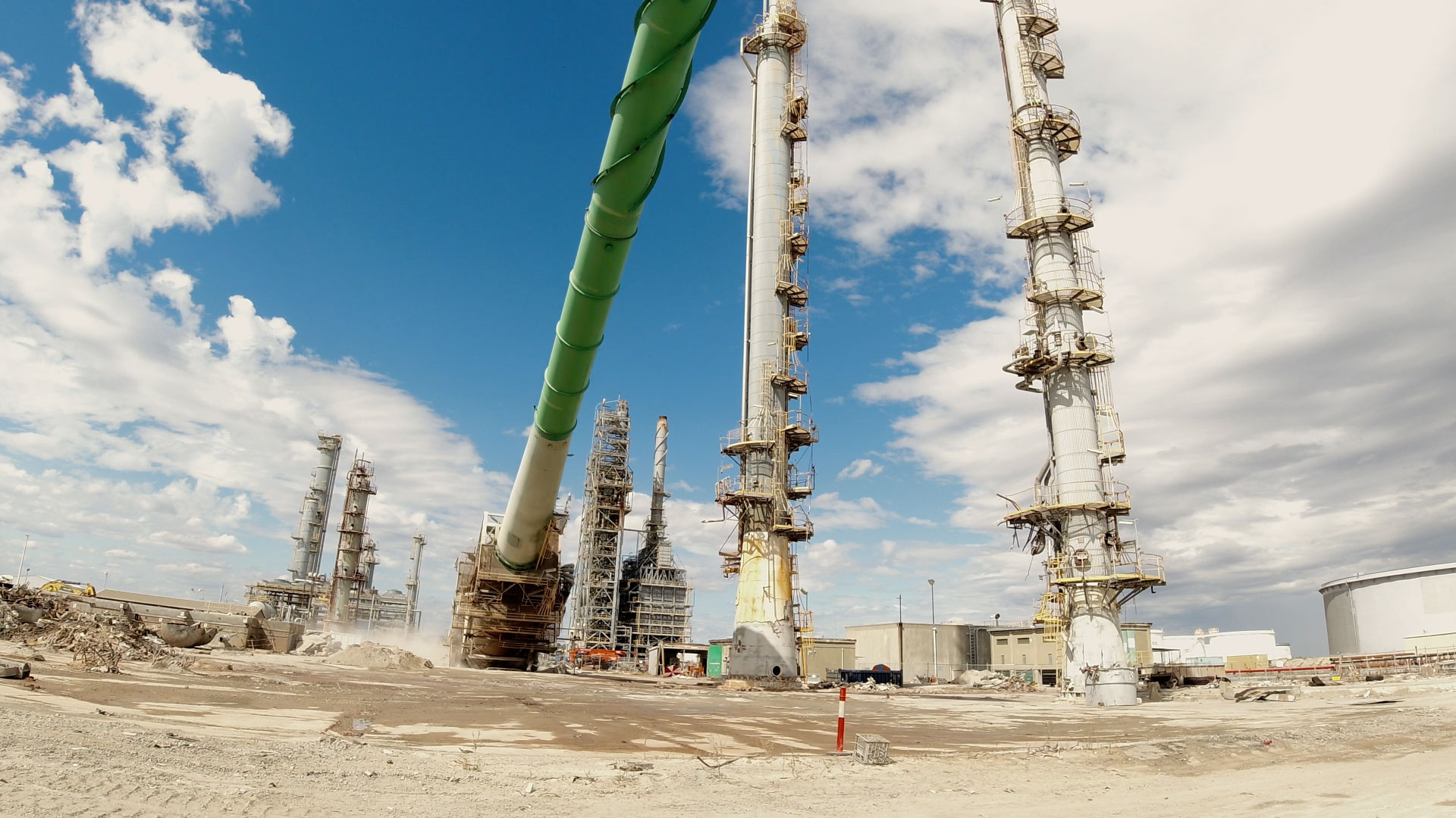 One of the Kwinana oil refinery towers going down.
