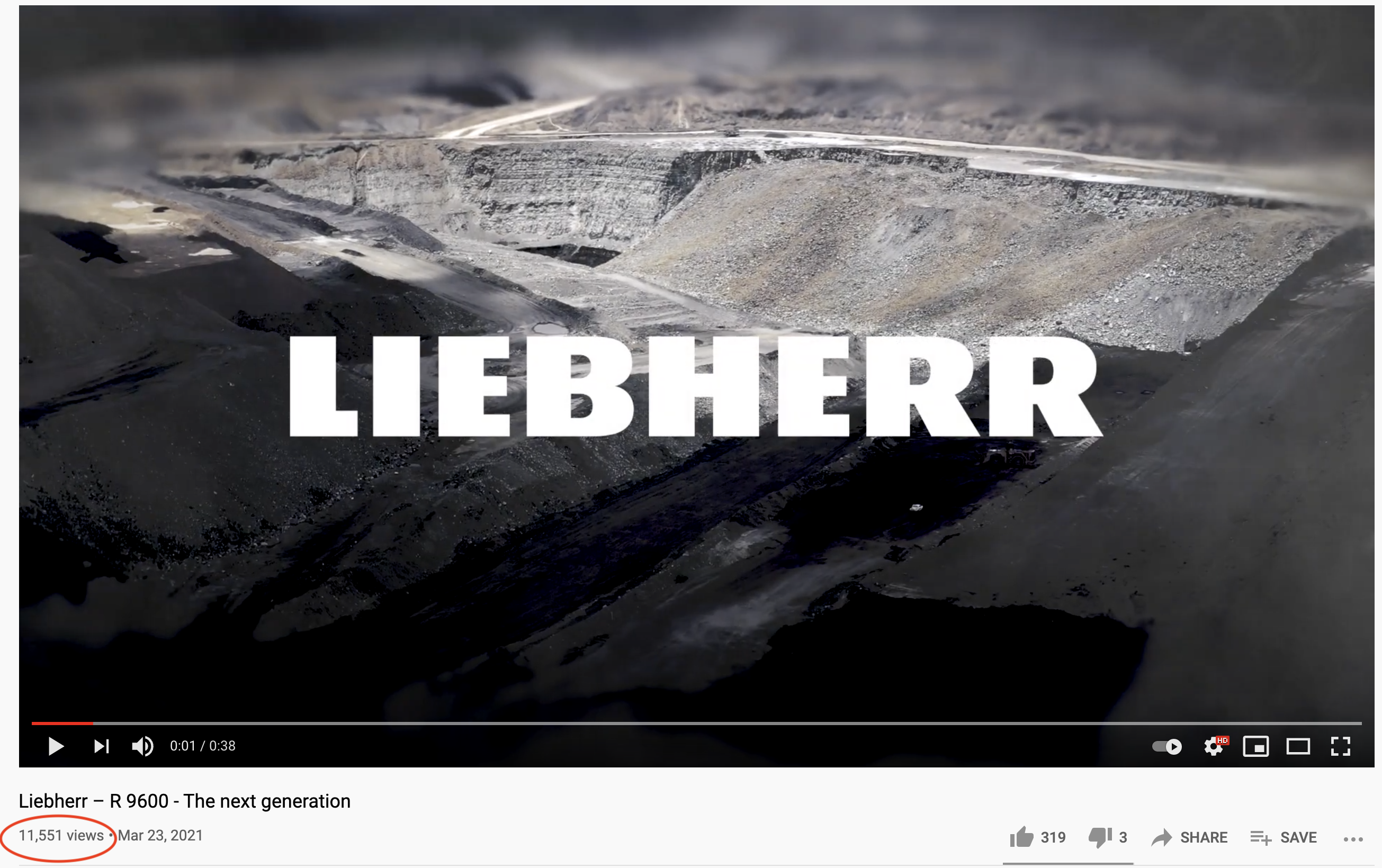 We recently completed a teaser trailer for Liebherr‘s new R 9600 excavator – it’s only been on Youtube for 5 days and already has over 10,000 views!